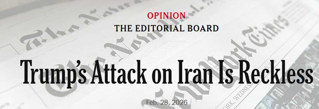روزنامه نیویورک تایمز امروز با انتشار سرمقالهای رسمی نسبت به آغاز جنگ علیه ایران موضع گرفت.